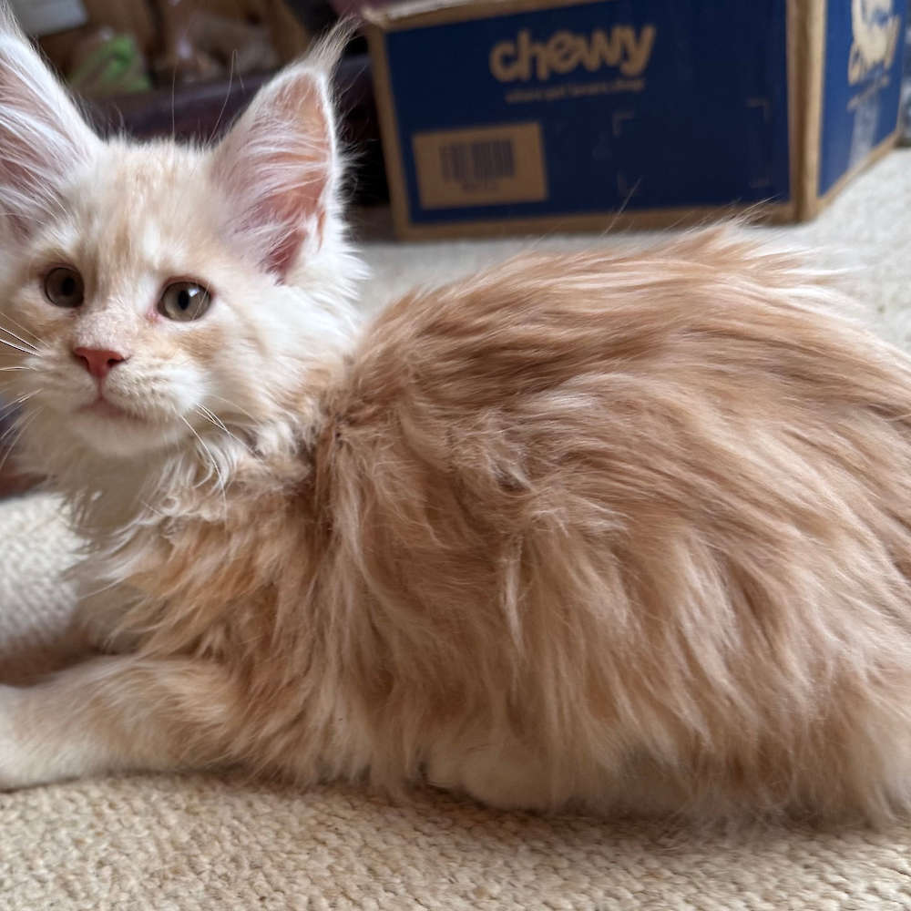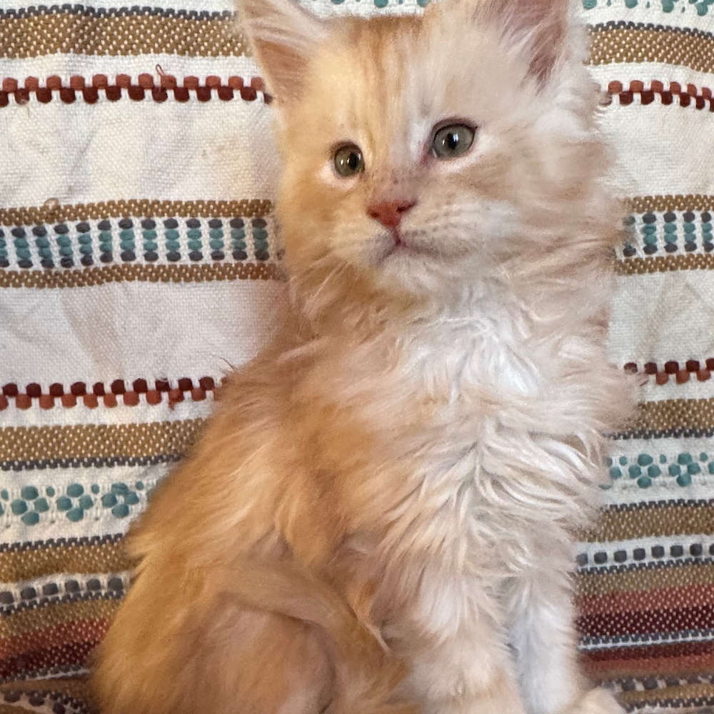 Food: Blue Ridge Beef brand of raw food in the "kitten mix" and "kitten grind" flavors. In a pinch, I've also fed them the puppy flavor. The website has a store locator application to help you find a nearby retailer. For dry food, I fed Fromm's Chicken Au Frommage - again, the website has a store finder feature. I also have fed Farmina N&D Prime Chicken and Pomegranate and that is available from Chewy's. It's more expensive than the Fromm's brand. For canned food, I have been feeding Dave's brand in the chicken flavors, but with mixed results. The raw is a lot more popular and I have been feeding mostly raw (3 times a day) with dry left out between meals. I will provide a sample of food with the kittens.